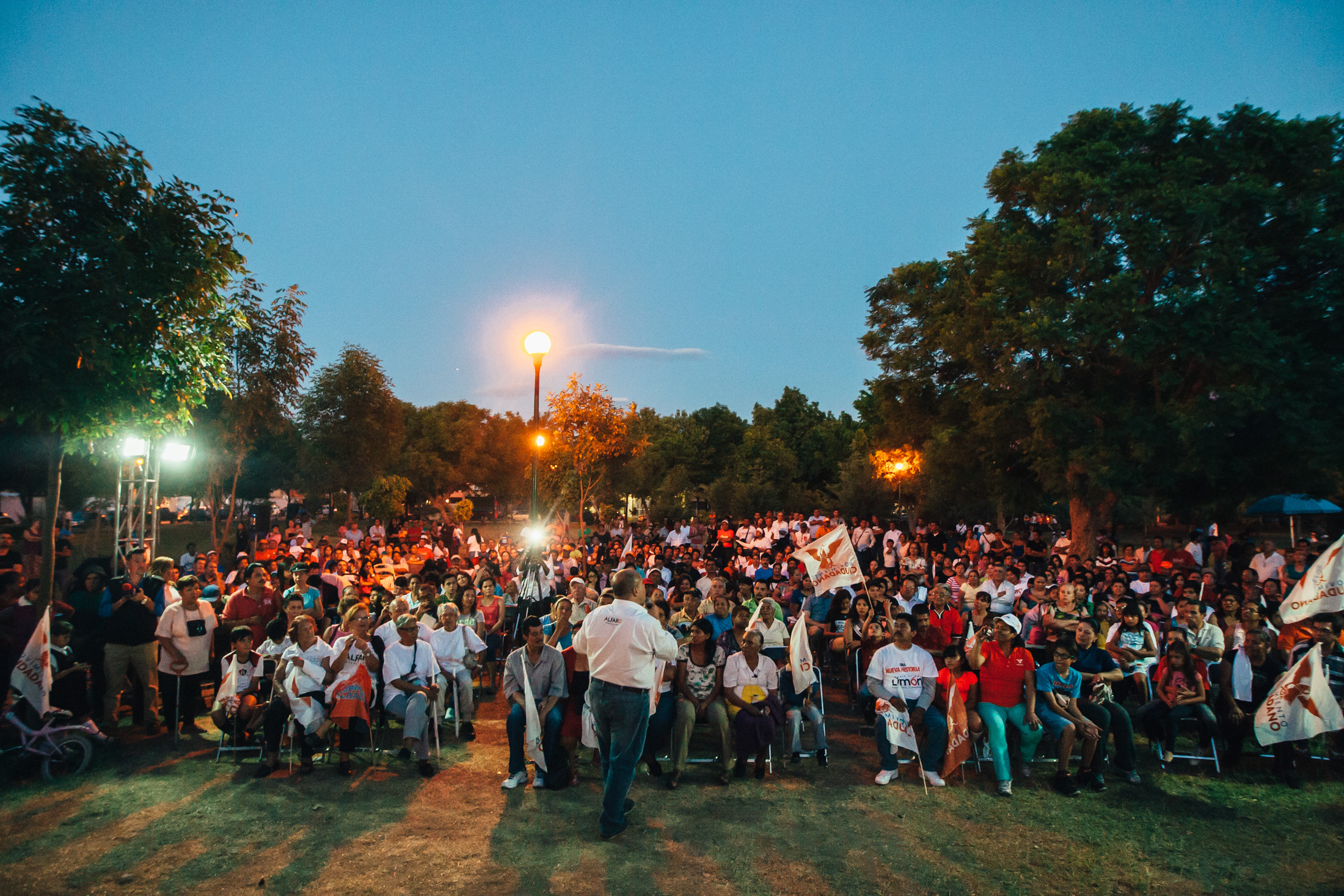 En Jardines del Sauz un pequeño parque es el punto en donde los vecinos todas las tardes salen a hacer ejercicio, platicar, jugar o simplemente caminar. Un lugar para la reunión y convivencia que es cuidado por los habitantes de esa colonia del sur de Guadalajara. Aún no caía la noche y los ánimos subían, en el centro del área verde se dispusieron sillas para que se acercaran a escuchar las propuestas de los candidatos al Congreso Local y Federal por Movimiento Ciudadano, además de la visita de Enrique Alfaro, candidato a la Presidencia Municipal de Guadalajara.